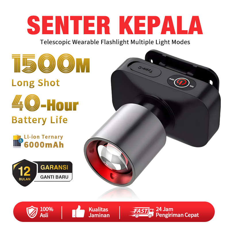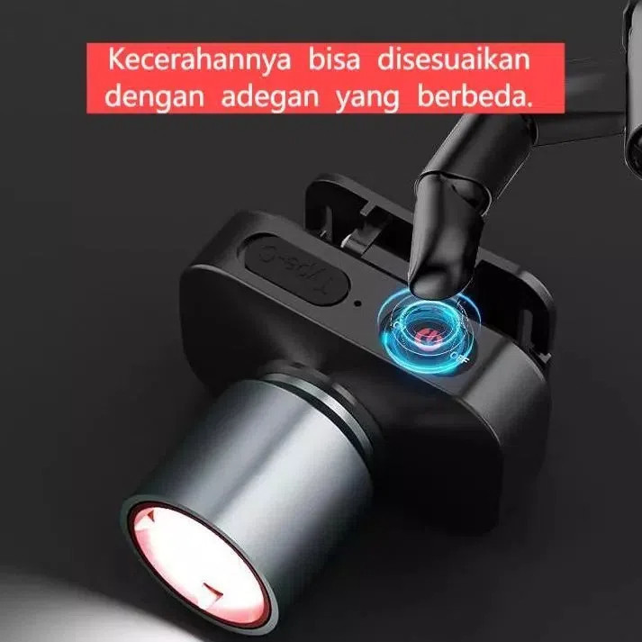 Senter Kepala 1200 Lumen Adjustable Super Terang LED 3 Mode Cahaya USB Rechargeable