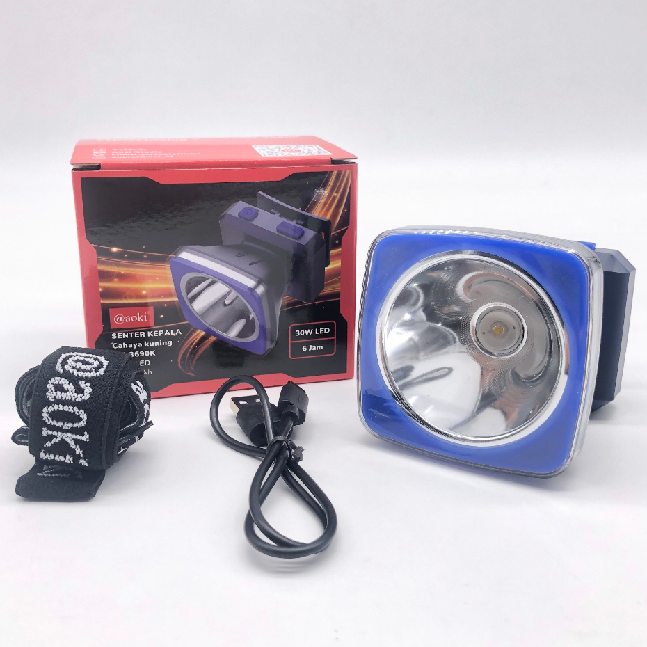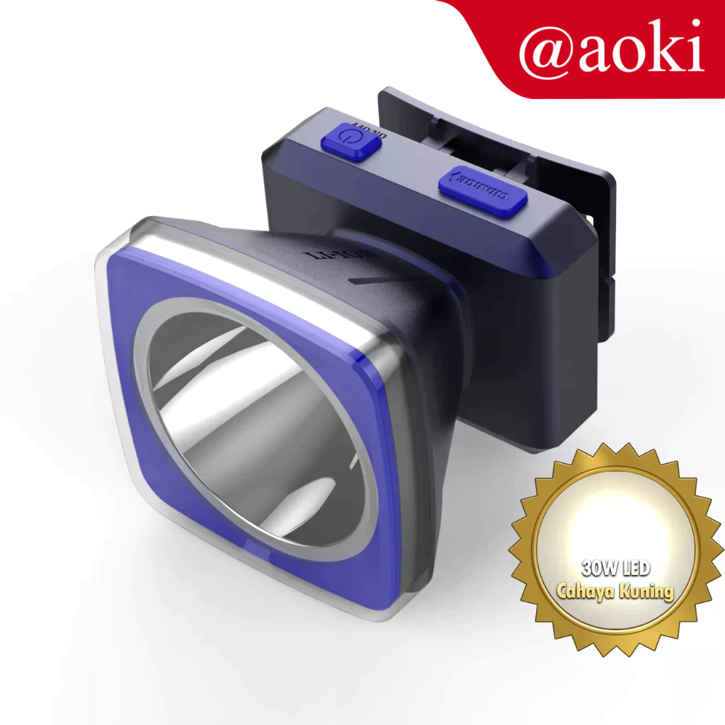 AOKI Senter Kepala 30W cahaya kuning baterai lithium tahan hingga 15Jam