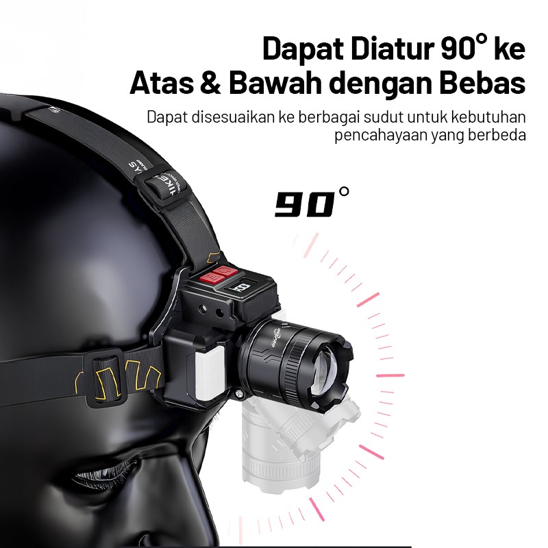 ONEPRO T190 Senter Kepala /Lampu Senter Kepala/Baterai 6000mAh 20W 1700 Lumen Super Serang Daya Tahan Baterai Yang Sangat Lama Waktu pemanfaatan lampu terang hingga 12 jam