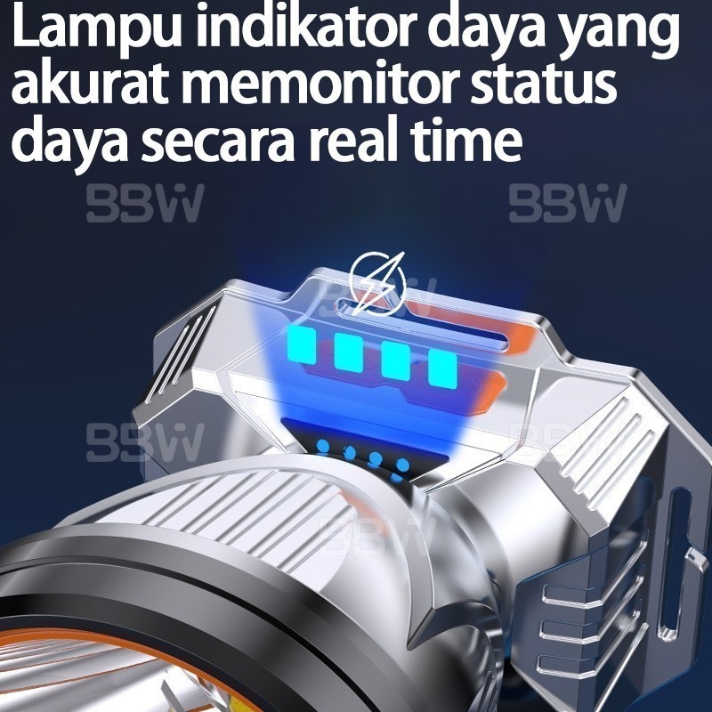 Senter Kepala LED YR 500W Super Terang - Baterai Bawaan Besar & Cas Ulang - Tahan Air & Anti Jatuh untuk Camping, Hunting, dan Outdoor