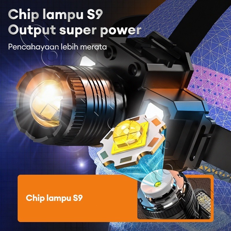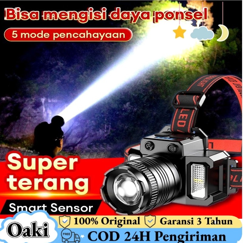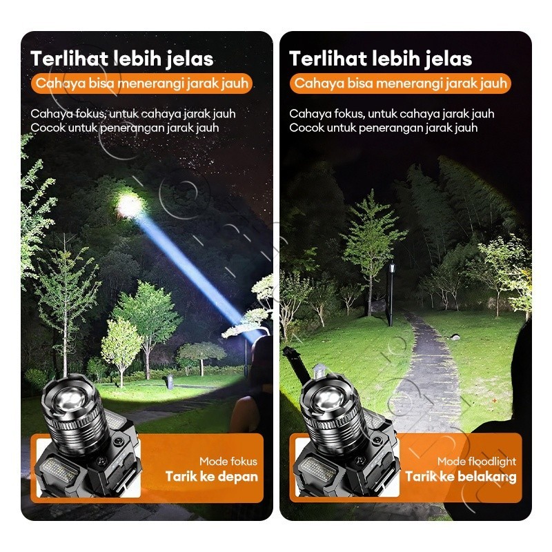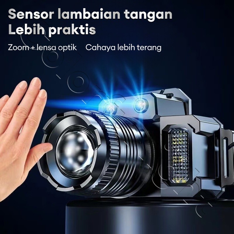 Headlamp LED 500W Penerangan terus menerus selama 800 H senter kepala super terang lampu depan luar yang kuat lampu depan tahan air sensor gerak senter berkemah senter kepala