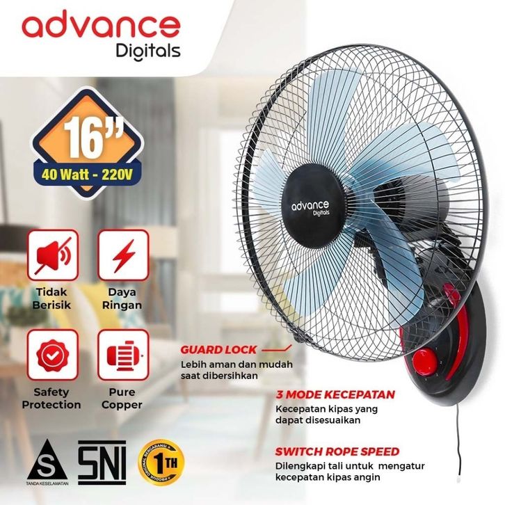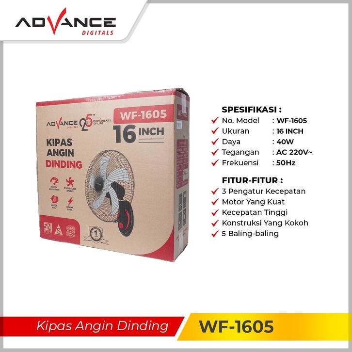 Advance WF-1605 Kipas Angin Dinding wall fan 5 baling ukuran 16 inch garansi 1 th