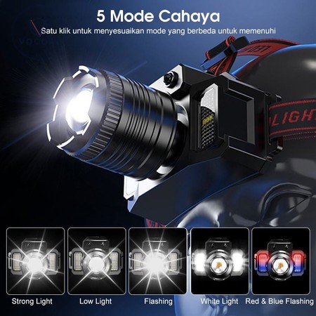 Garansi 10 Tahun Headlamp Led 500W Penerangan Terus Menerus Selama 800 H Senter Super Terang Lampu Depan Luar Yang Kuat Lampu Depan Tahan Air Sensor Gerak Senter Berkemah Senter Kepala pro