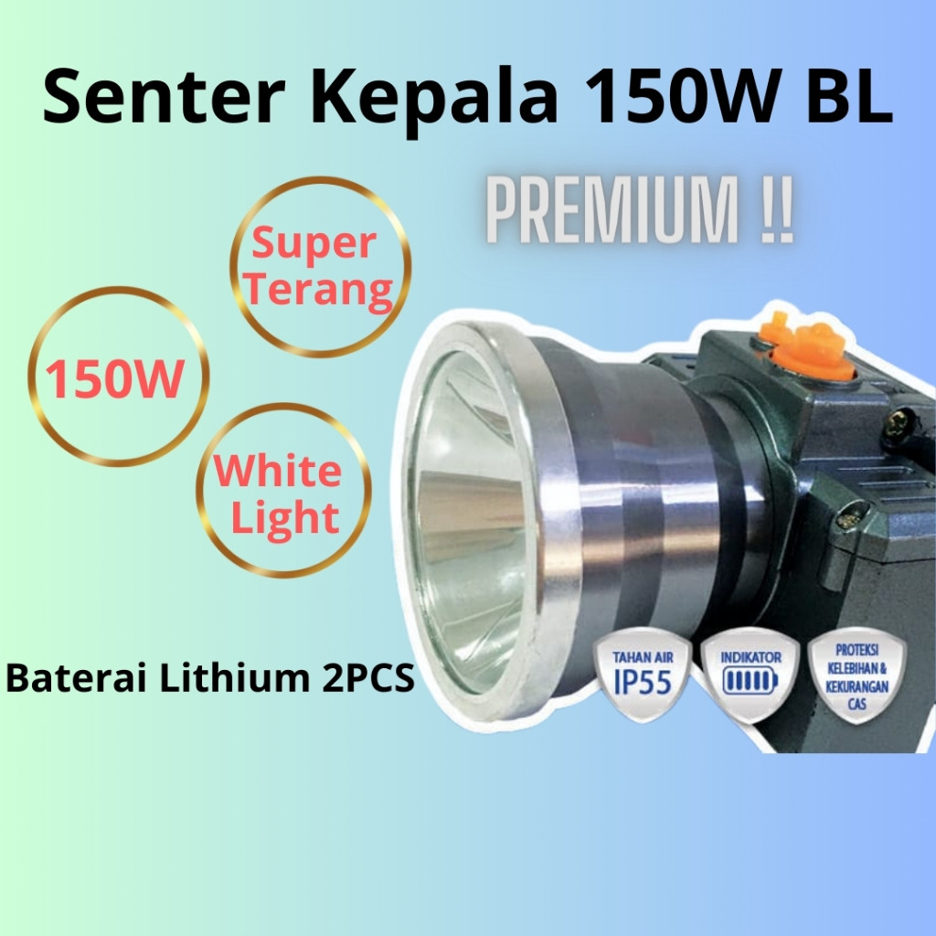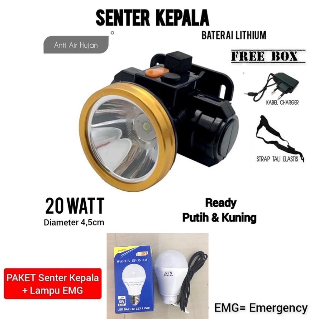 Head Lamp 35w, 50w, 80w, 100w, 120w, 150w /Senter Kepala Terang , Anti Air , Rechargeable , Ganti Baterai 70 Watt
