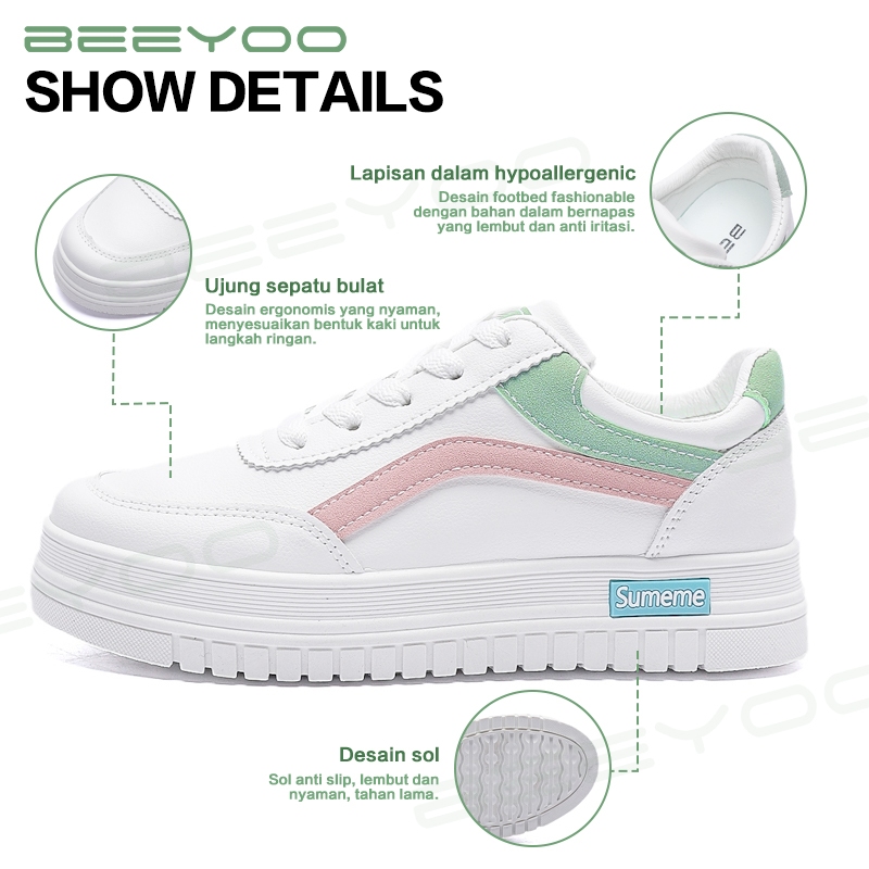 Beeyoo Sepatu Sneakers Tali Sepatu Wanita Dewasa Fashion Sport Shoes Kets Jalan Santai WK102