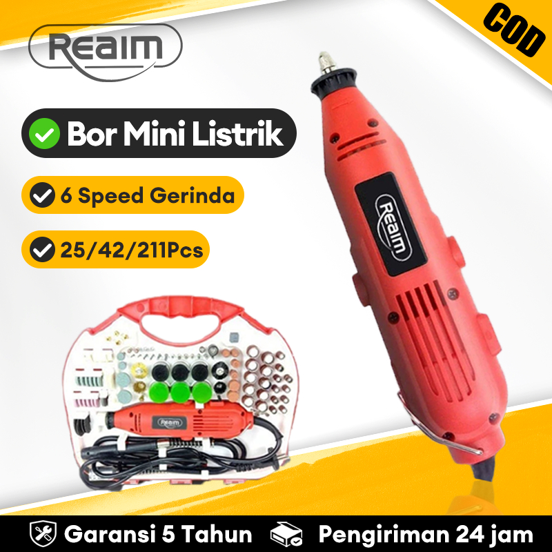 REAIM Gerinda listrik Bor Mini Drill Electric Engraver Grinder Alat Ukir Listrik Bor Set 25 PCS/42 PCS/211 PCS