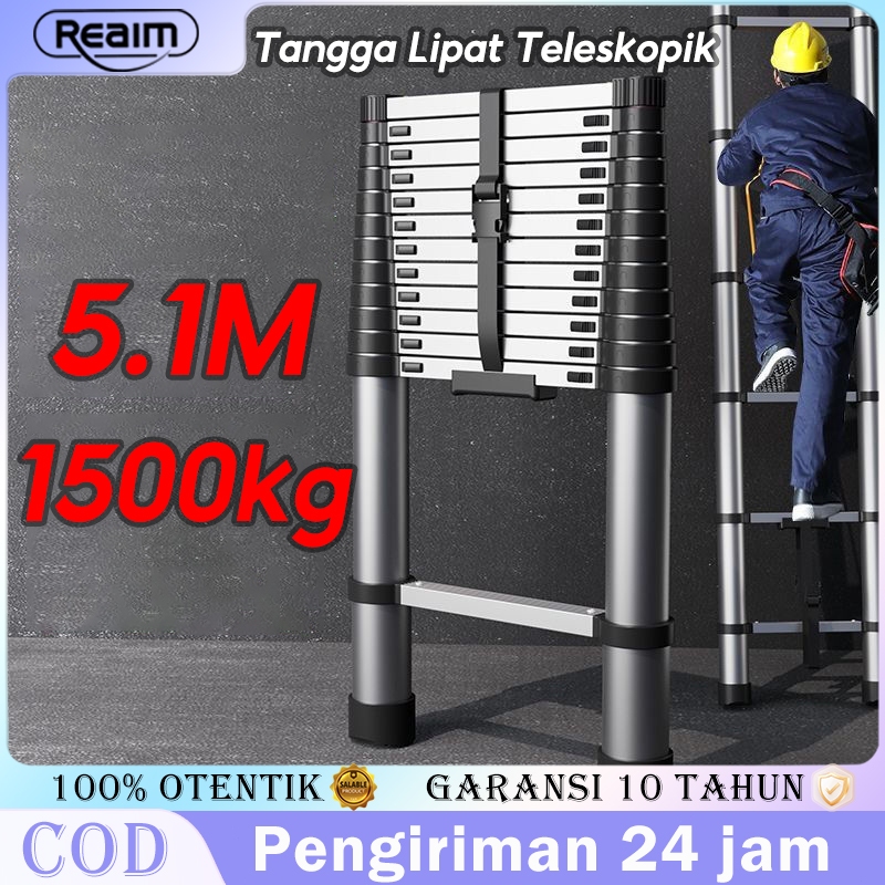 Tangga Teleskopik Lipat Aluminium Tangga Teleskopik Dik Secara Ketat 2.7m/3.9m/4.3m/5.1m