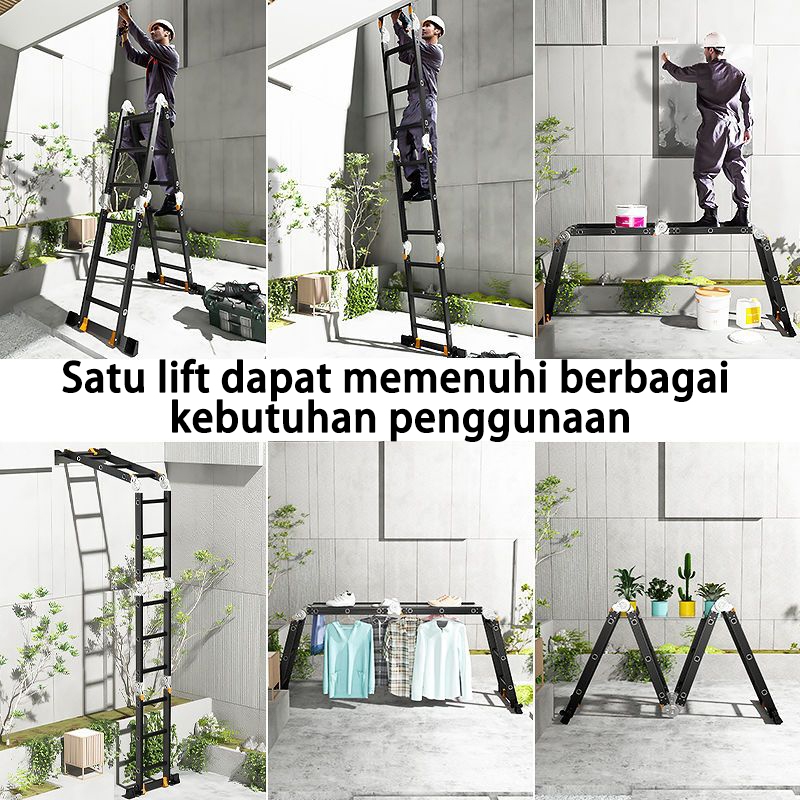 REAIM Tangga Lipat Aluminium Paduan Aluminium Teleskopik Tangga Teleskopik Multifungsi 3.8M4.8M5.8M