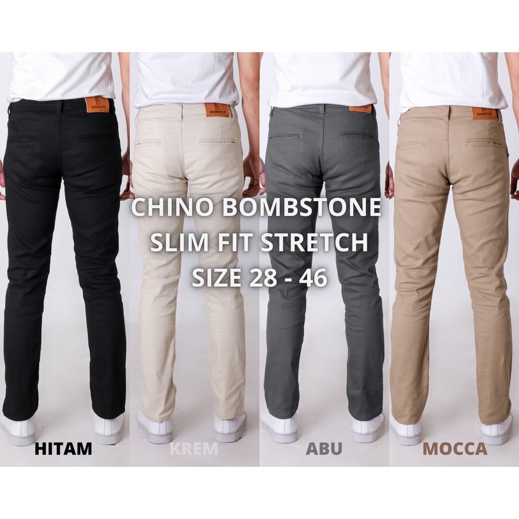 Celana Chino Panjang Pria BOMBSTONE Chinos Slimfit Stretch Cowok