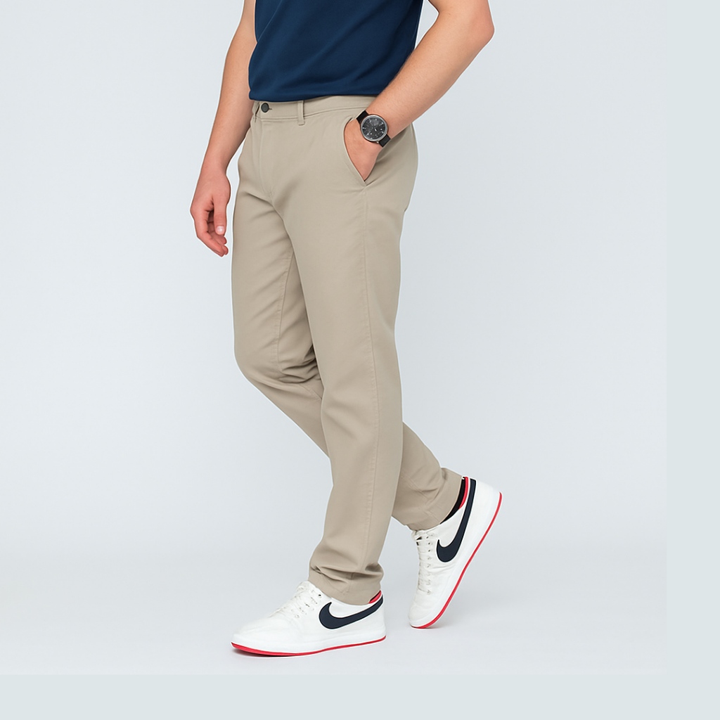 Celana Panjang Pria Bahan Kanvas Standar Reguler Fit Warna Krem Size 27-38