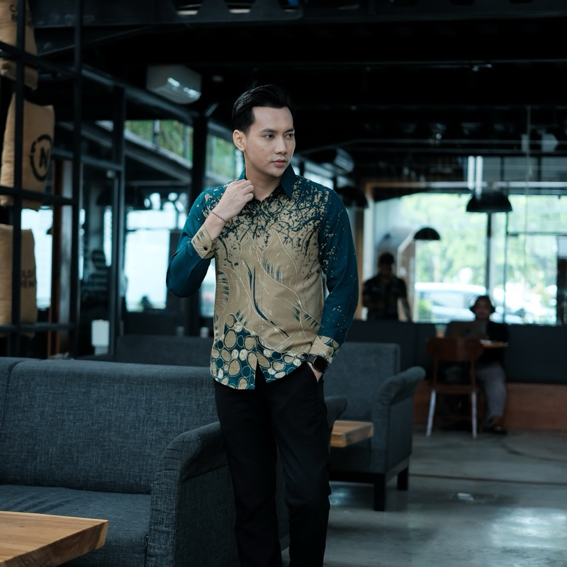 Kusuma Hijau Kemeja Batik Pria Lengan Panjang Furing Full Katun Slimfit