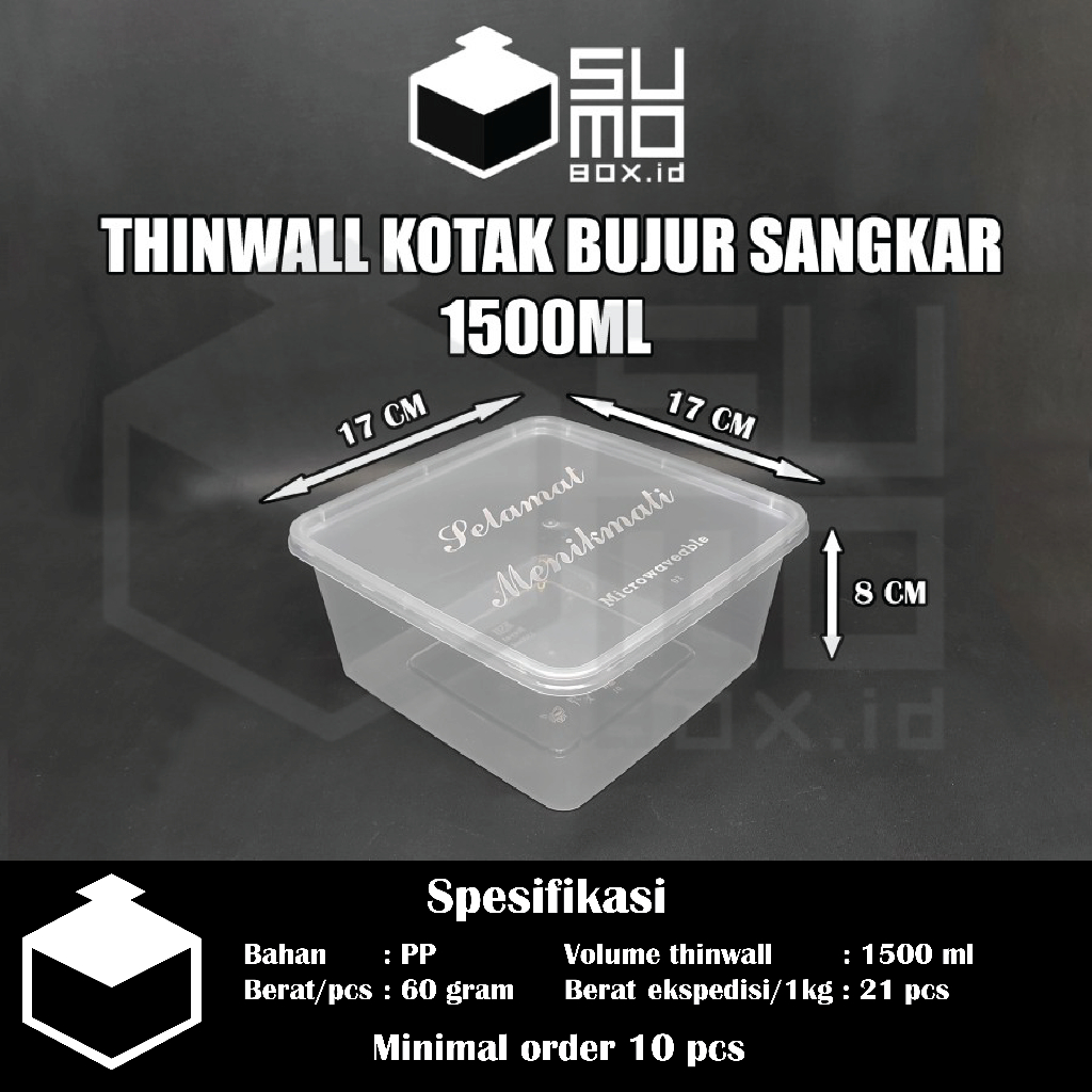 Thinwall BUJUR SANGKAR 1500ml + Tutup / Kotak Makan Plastik 1500 ml FREE PACKING [ECERAN] Murah Gratis Ongkir