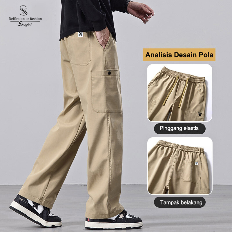 SUYX Celana Cargo Pria Korean Stlye Loose Pants Fashion Celana Gombrang Straight Celana Outdoor Pria