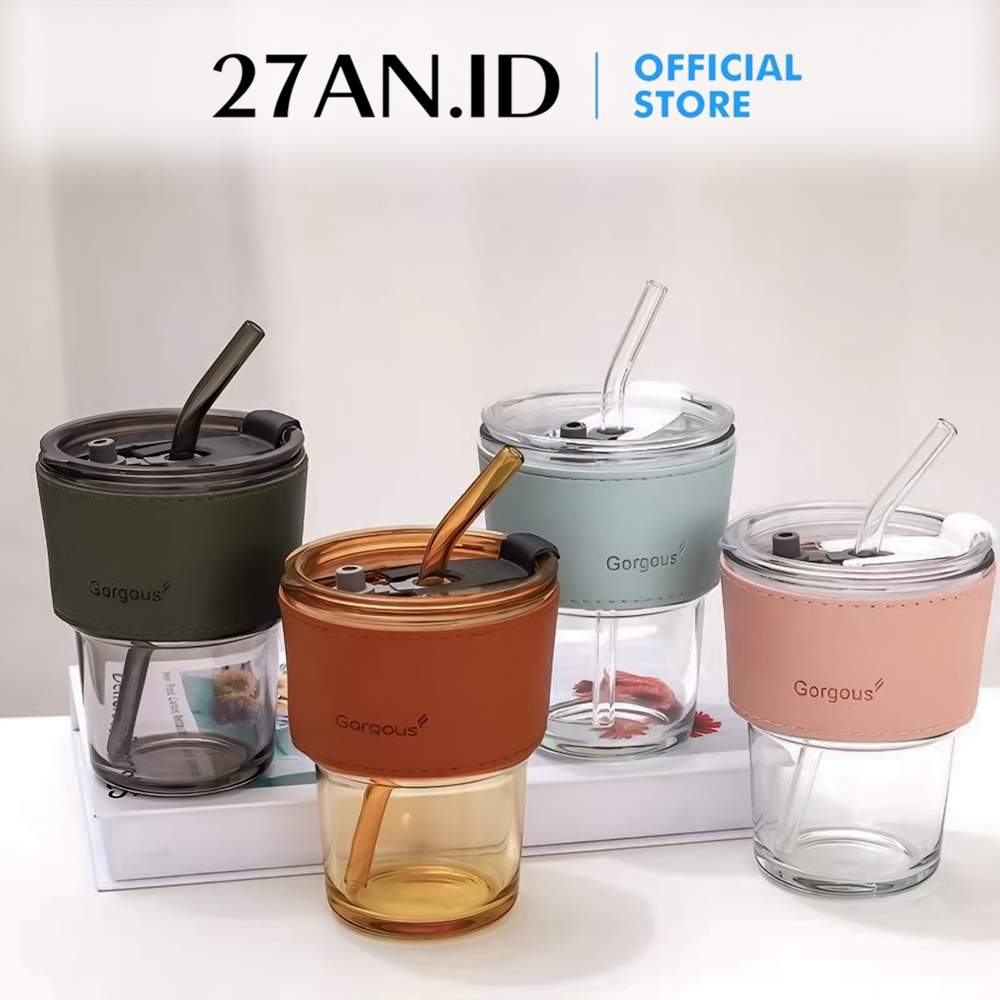 Botol Minum Kaca Aesthetic H663 Tumblr Gelas Kaca Sedotan dan Tutup Gelas Vintage Murah Gratis Ongkir