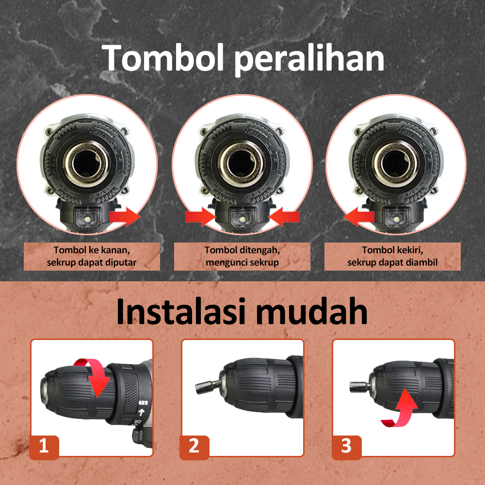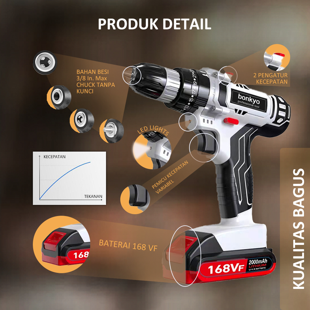 Bonkyo 168VF Mesin Bor Impact Drill / Bor baterai /Bor Listrik/Beton Besi Kayu Full Set Pilihan Bor Tanpa Kabel Bor bate