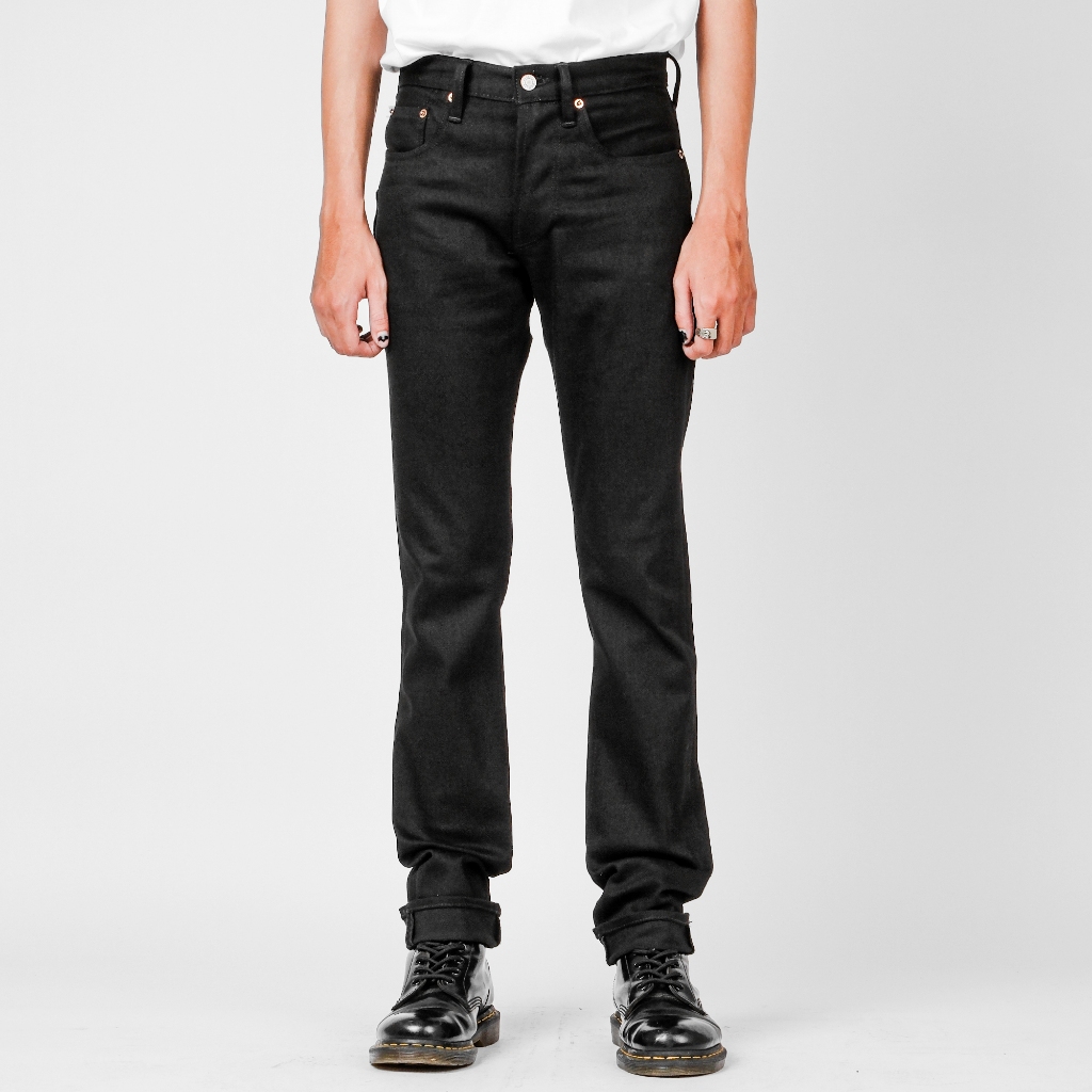 Bespoke Project - Celana Jeans pria hitam Black Raw denim