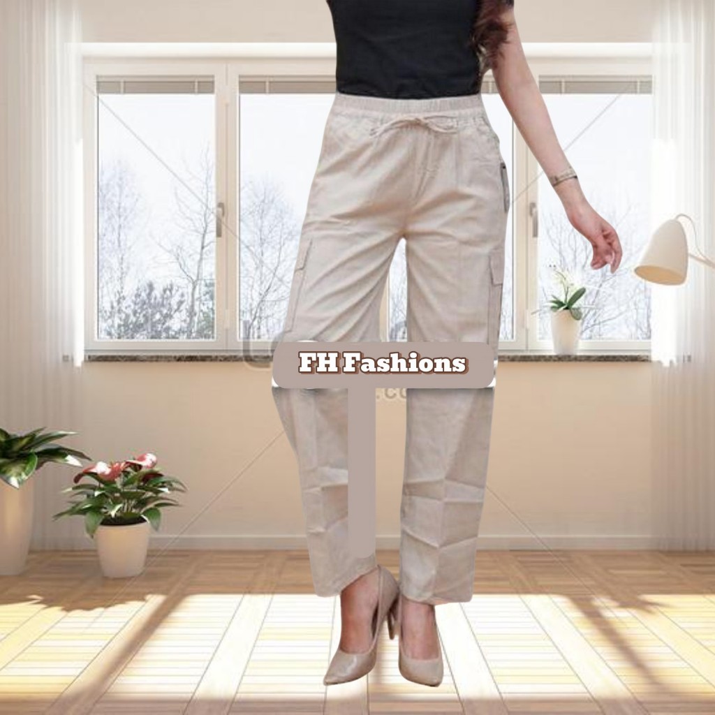 FH Celana Kargo Wanita Bahan Twill Combad Tebal Halus Pinggang Karet Muter