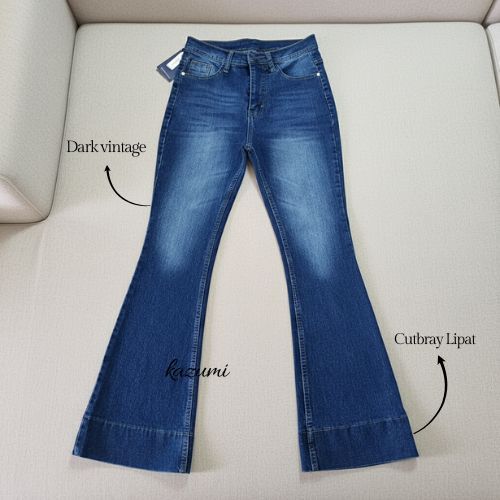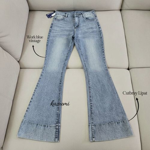 Kazumi - Cutbray Jeans Janita Higwaist Lipat Kaki Besar Jeans Strech Wanita Bawah Lebar