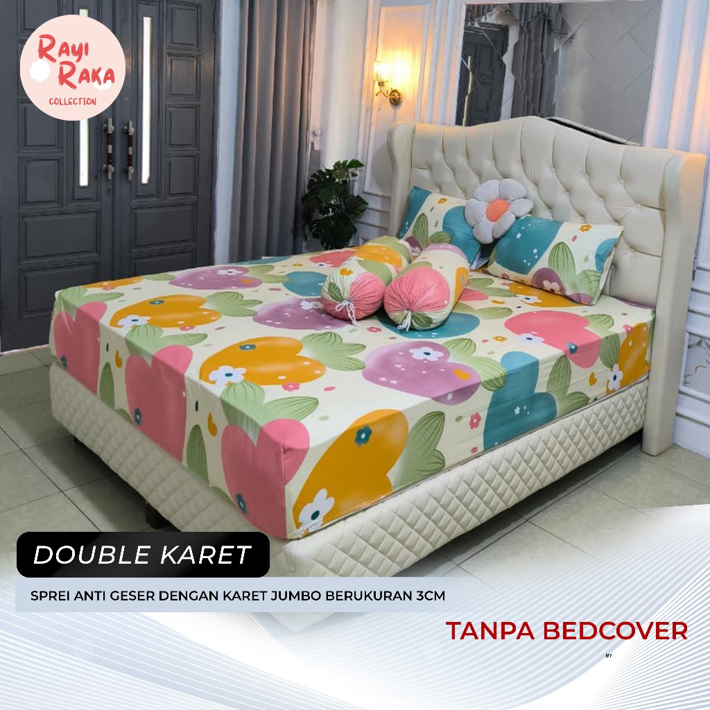 Rayiraka Sprei Anti Geser Tinggi 30Cm Katun Halus Double Karet Jumbo Aesthetic Homemade