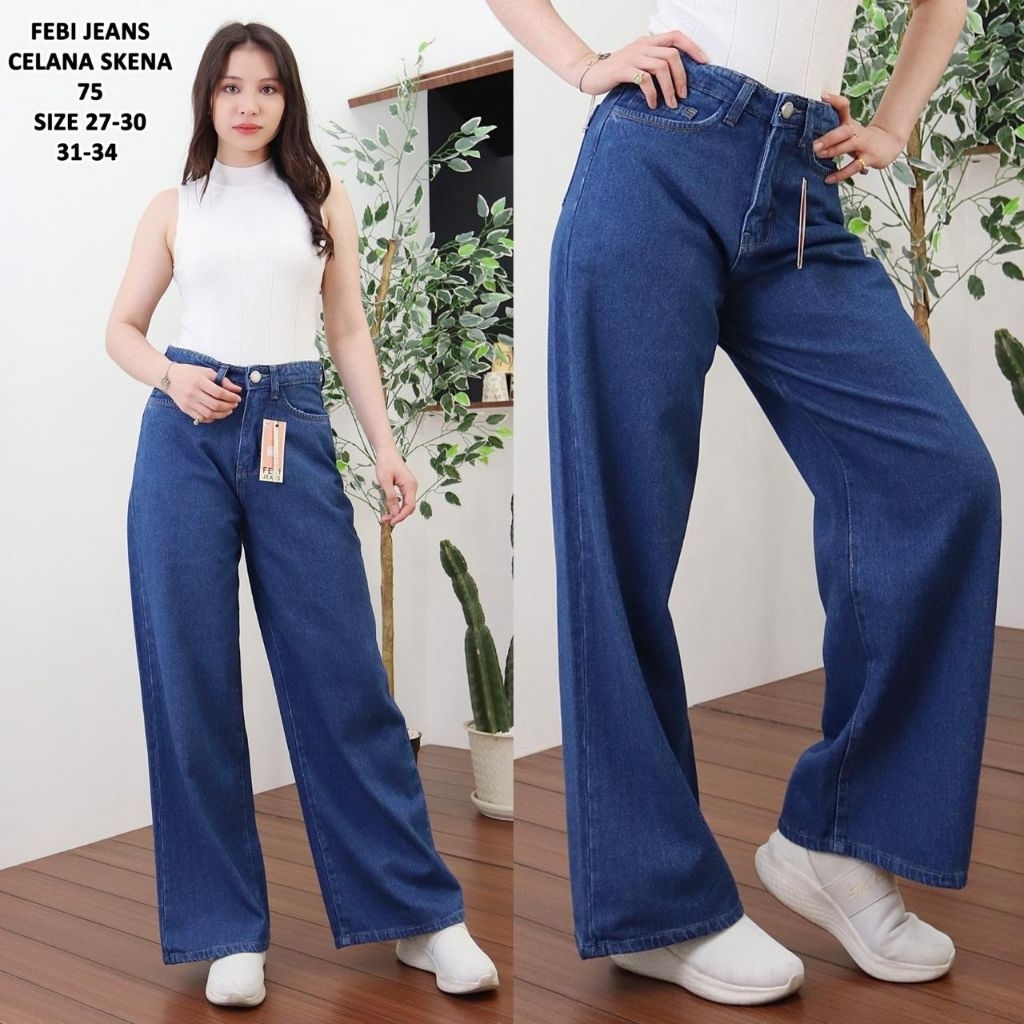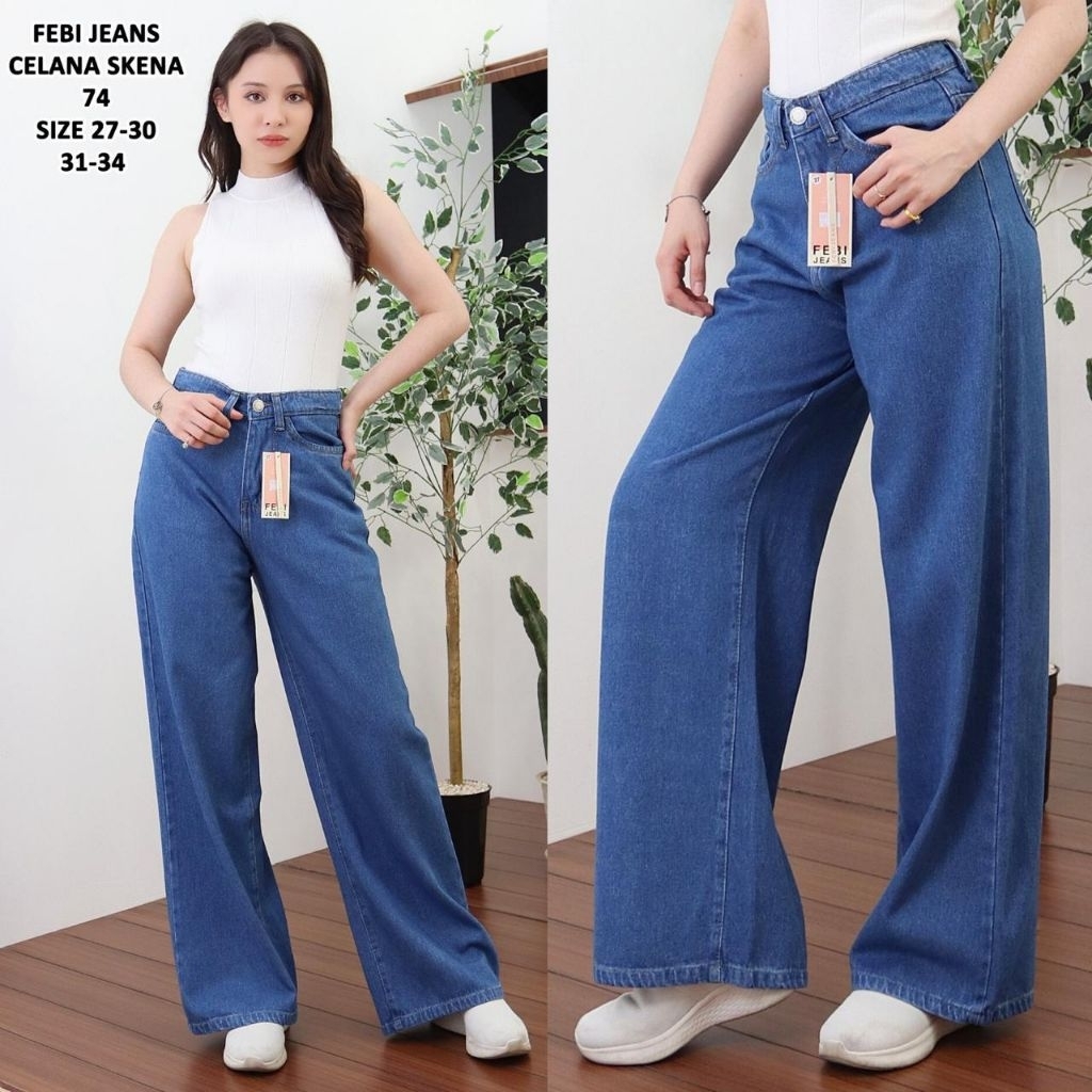 Celana Panjang Jeans High Waist Skena Baggy Loose Wide Leg 27-34