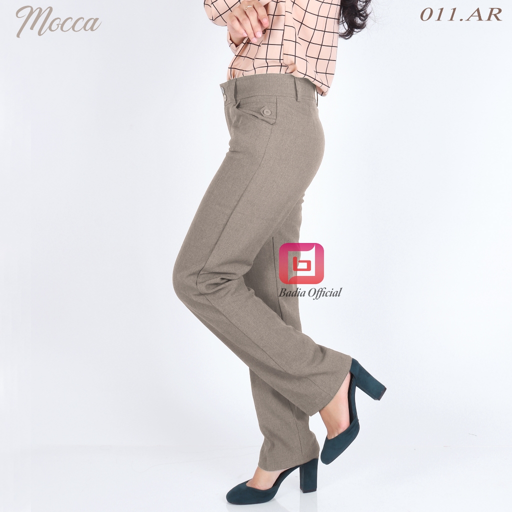 celana formal kerja kantor bahan ikat pinggang kancing semiwool korean gracella jumbo wanita premium