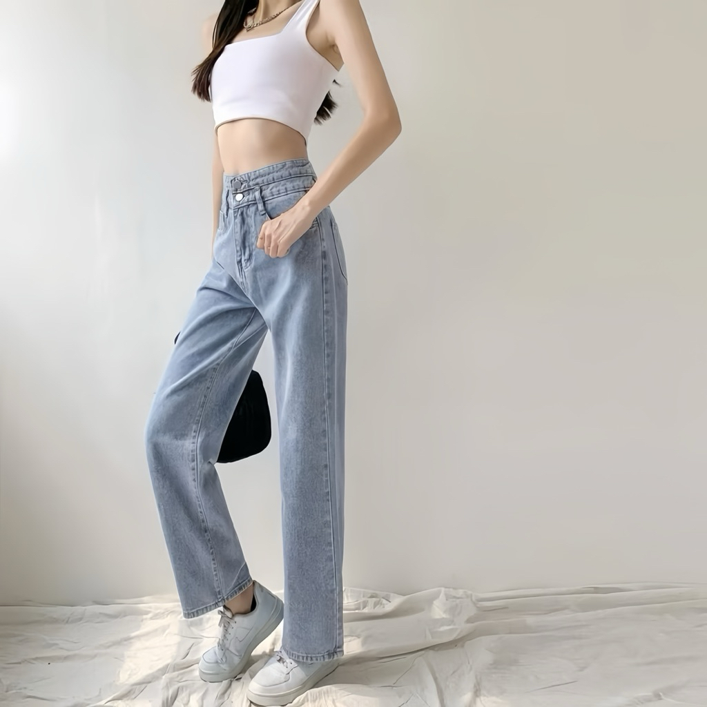 [Beevalue] Celana Panjang Wanita Kulot Jeans Highwaist Dua Kancing Bahan Premium | Loose Jeans Wanita Highwaist | Boyfri
