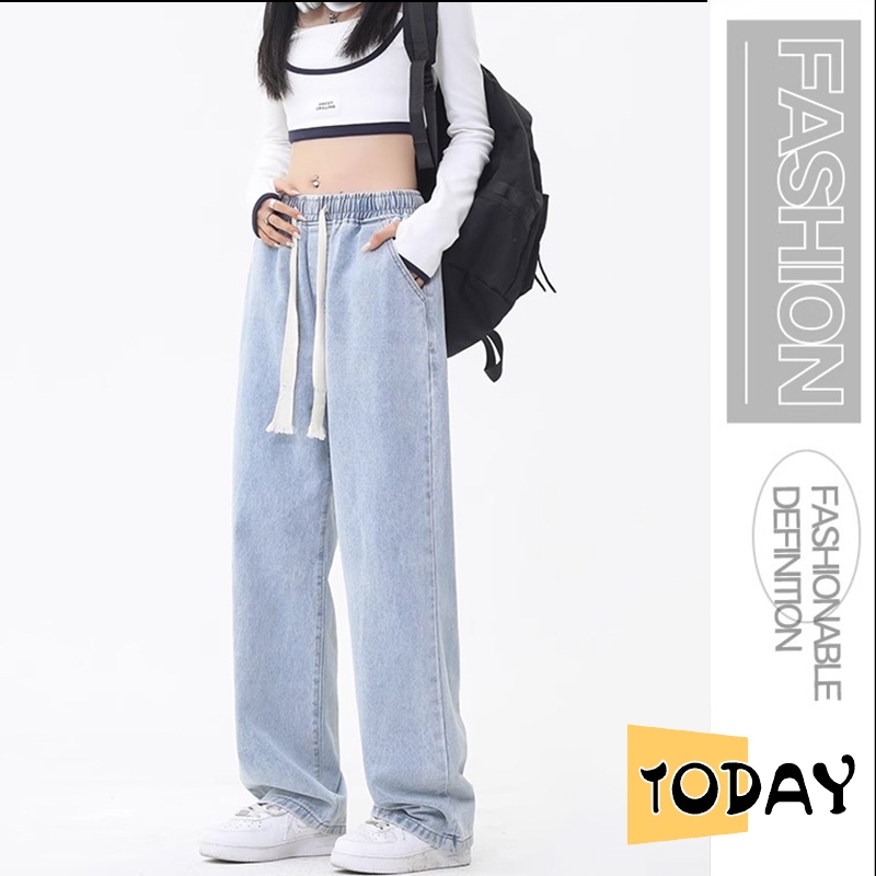 VV - Celana jeans wanita korean style celana jeans pinggang karet celana oversize wanita baggy pants celana kulot jeans
