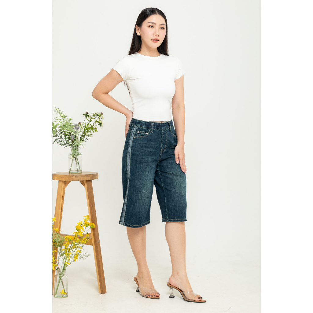 2023 Jeans - Celana Wanita Kulot Jeans Pinggang Karet S372 (JS)
