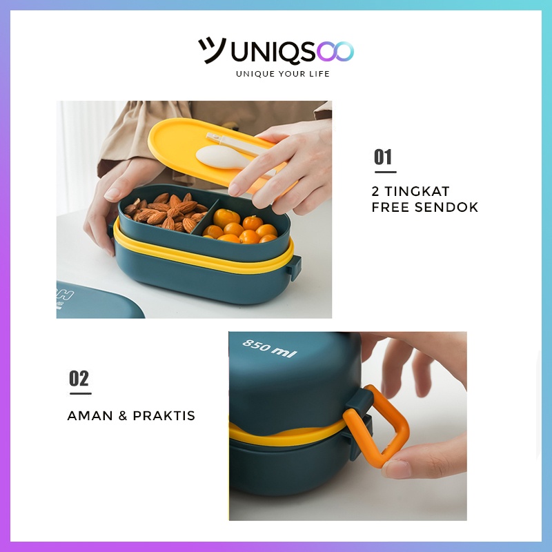 UNIQSOO Lunch Box 2 Tingkat / Kotak Bekal Anak Tingkat / Bento Box Tingkat / Kotak Bekal / Tempat Makan Anti Tumpah