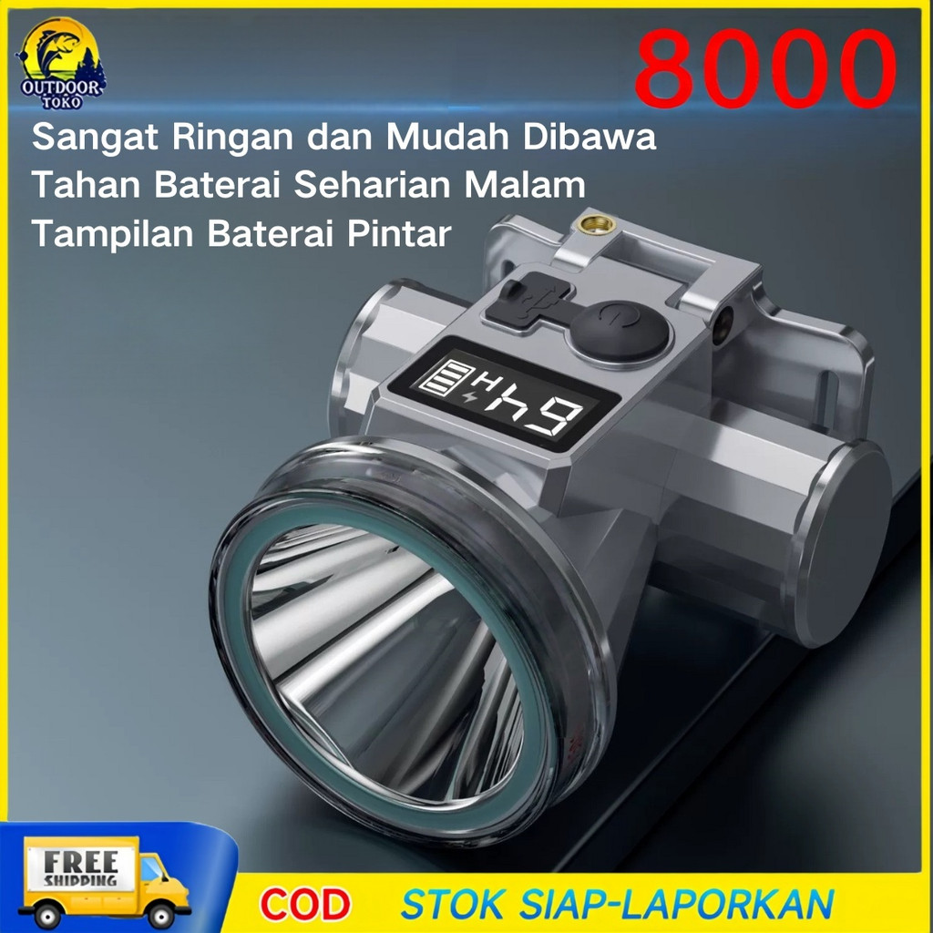Senter Kepala Cahaya Ringan Dan Tidak Melelahkan 60W 800Lumen 8000mAh