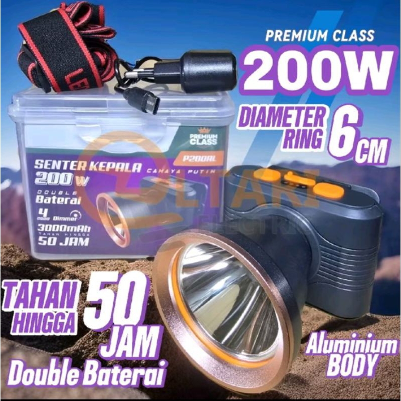 Senter Kepala JUMBO LED Headlamp 500 Watt Probest P500AL Batre 6000mAh Tahan Hingga 50 Jam Pemakaian Cahaya Super Terang Tahan