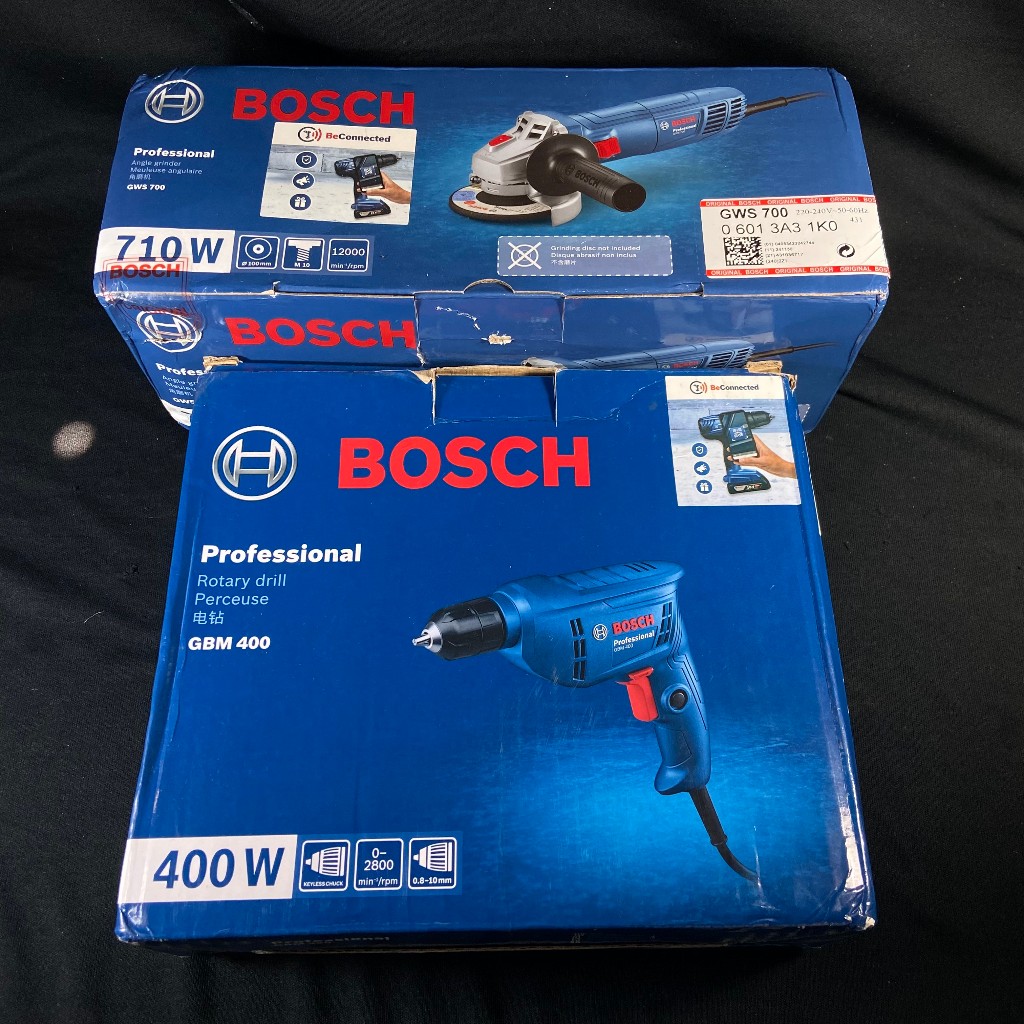 BOSCH Paket Tukang Gerinda Tangan GWS 700 Angle Grinder 4 Inci x Mesin Bor GBM 400 Rotary Drill 10 MM Professional