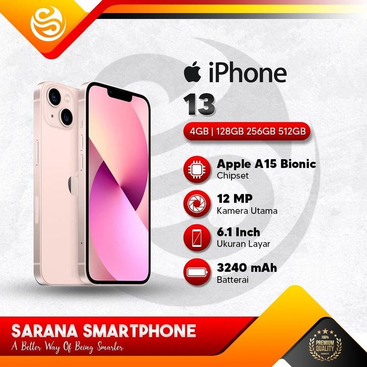 iBox Apple iPhone 128GB 13 RESMI PINK/BLUE/WHITE/BLACK | Tanpa DP | Garansi Resmi