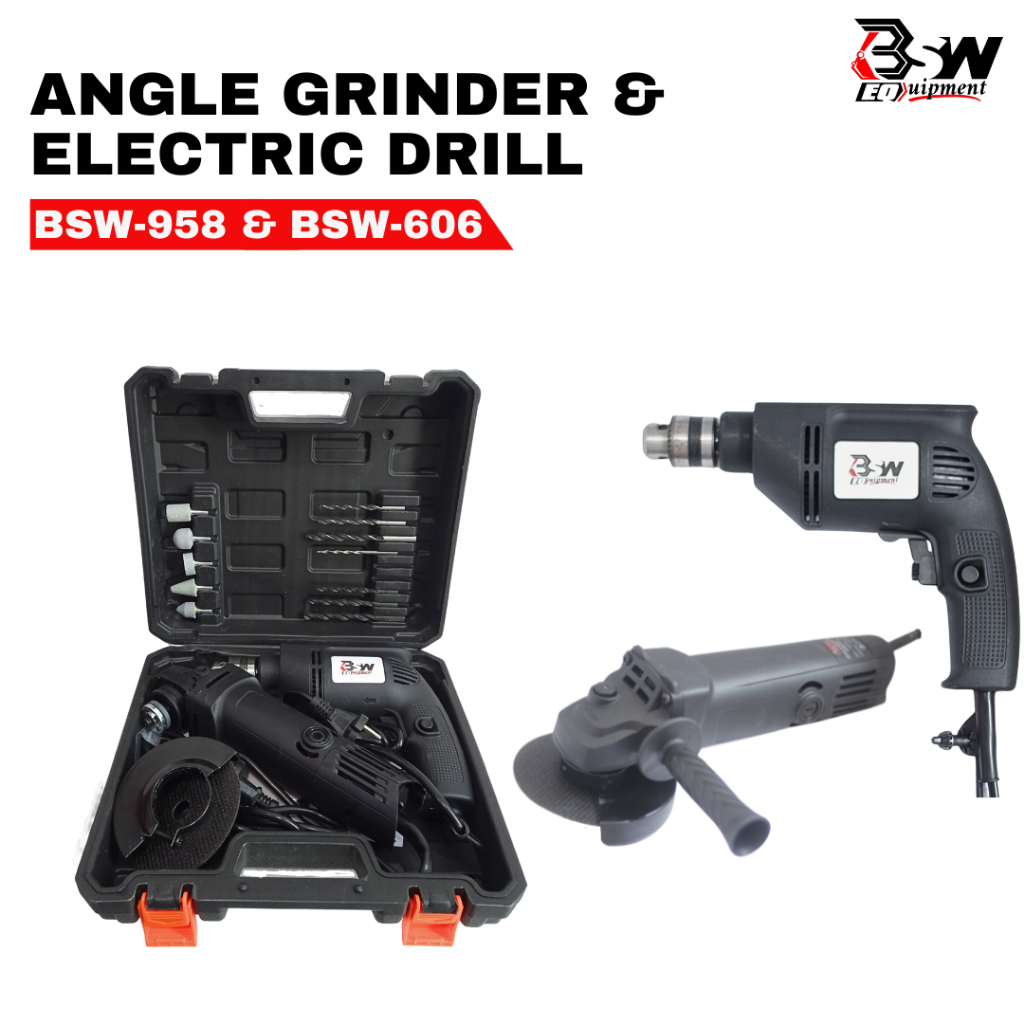BSW Mesin Gerinda Tangan dan Mesin Bor Listrik 10mm Set Gerinda dan Bor Paket Bor Gerinda Free Koper Gerinda dan bor - paket pertukangan - mesin bor gerinda murah