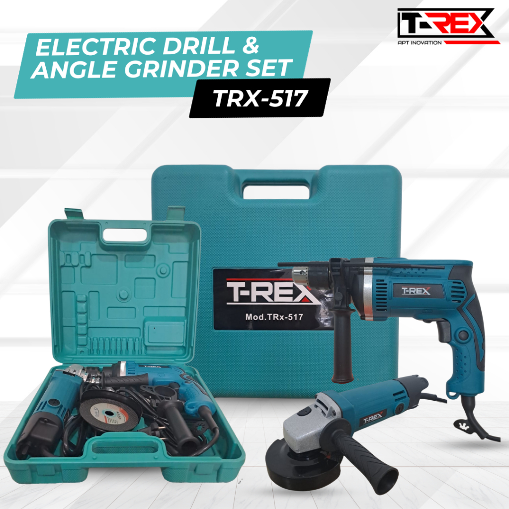 T0P 1 T-REX SET BOX Mesin Bor dan Gerinda, Bor 10mm/13mm Gerinda Tangan listrik 4 inch Mesin Bor Tangan Kayu Besi Electric Drill Reversible Bolak Balik Variable Speed