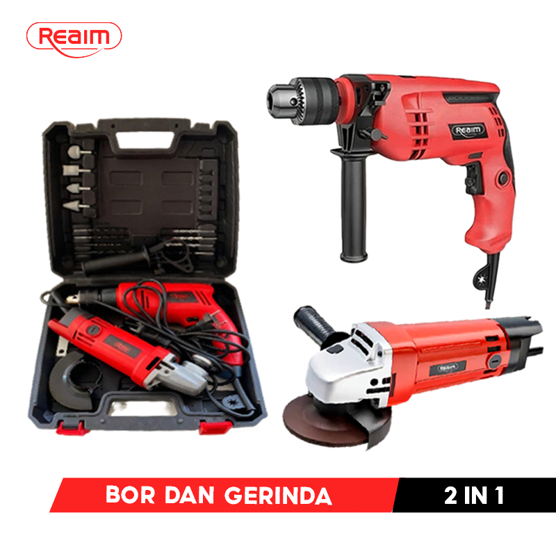 REAIM Mesin Gerinda Tangan Dan Mesin Bor Listrik 13MM listrik mesin gerinda listrik mesin gerinda tangan paket bor