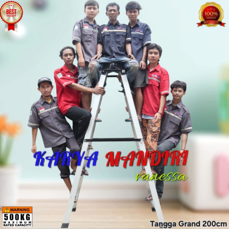 Tangga Lipat Aluminium Super Jumbo Grand 500 Kg - Ukuran 1 M / 1,25 M / 1,5 M / 1,75 M / 2 M / 2,5 M