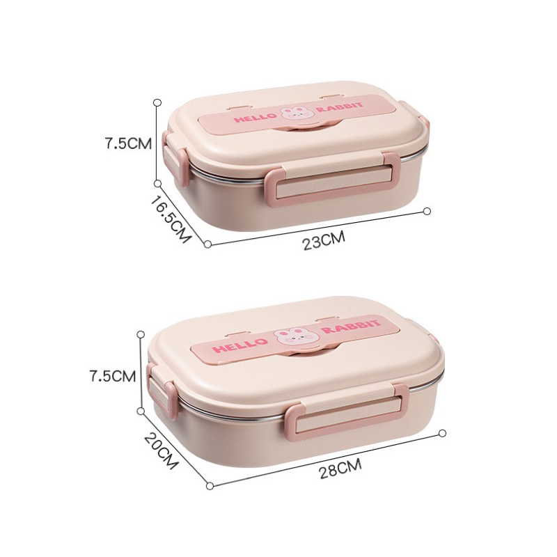 Lunch Box Sekat Stainless Steels Rabbit Bear Include Bag | Kotak Makan Stainless Steel Premium Quality