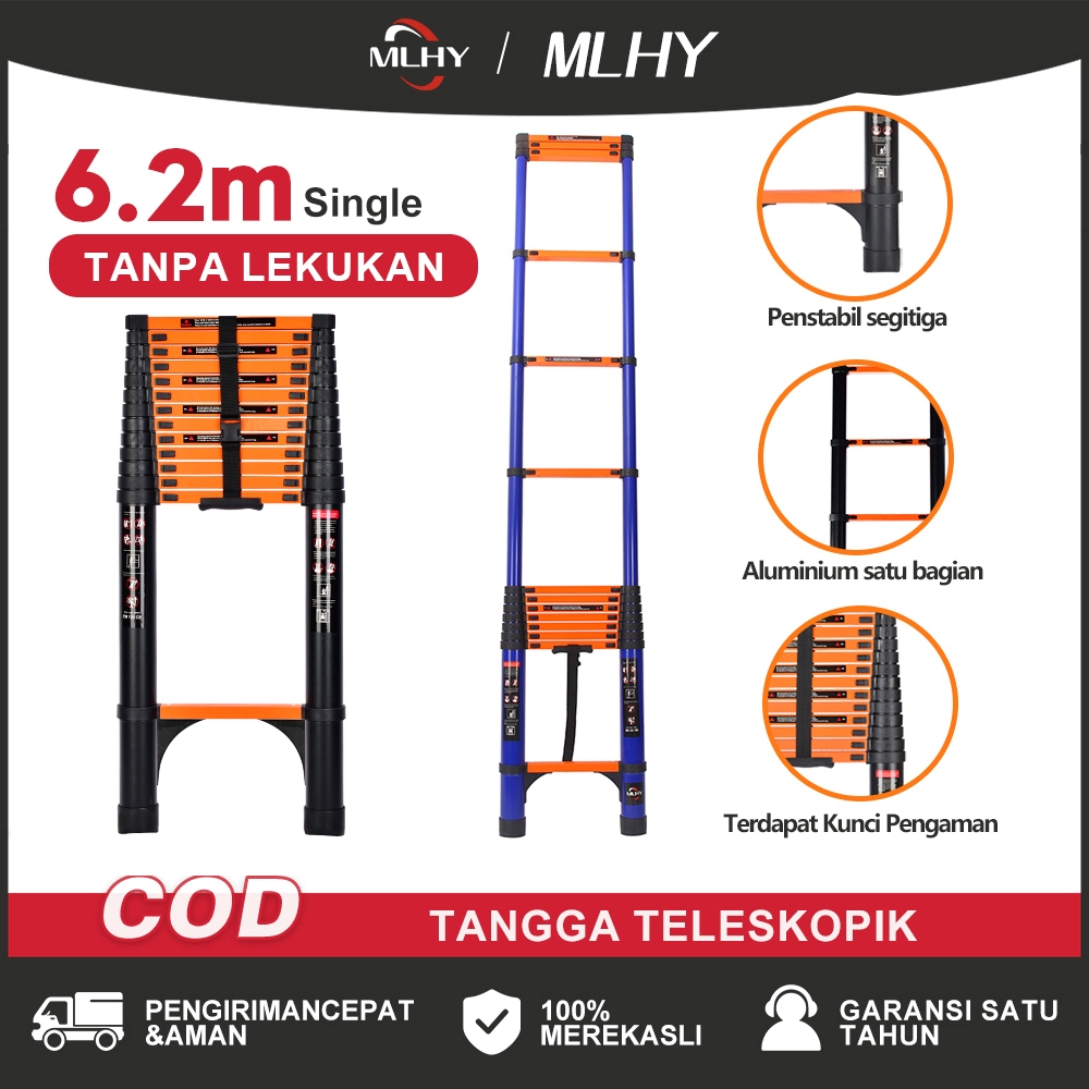 MLHY Tangga Teleskopik tanpa lekukan 6.2M Lipat Aluminium Telescopic Single Ladder 6.2M