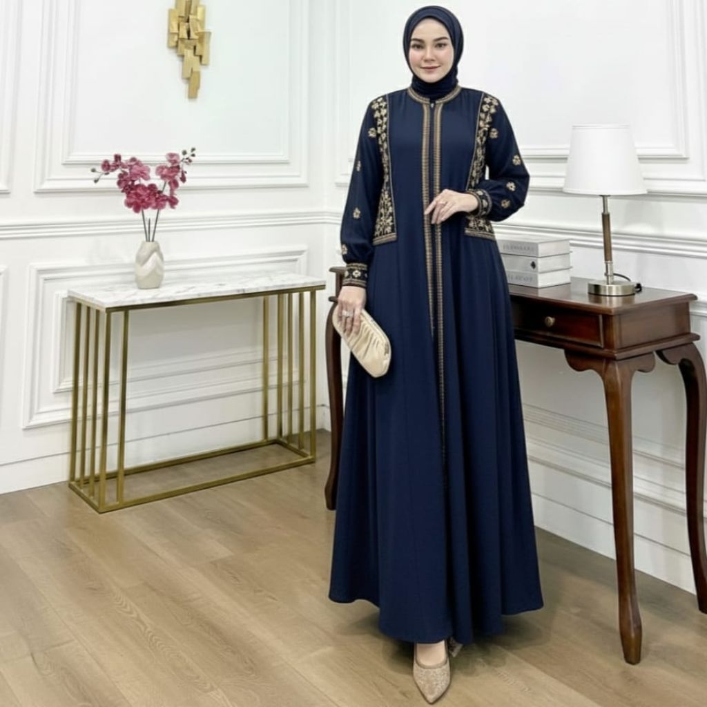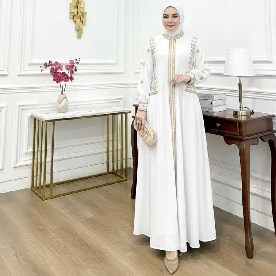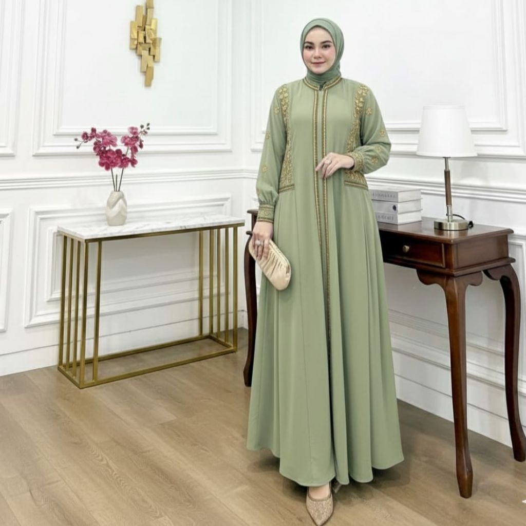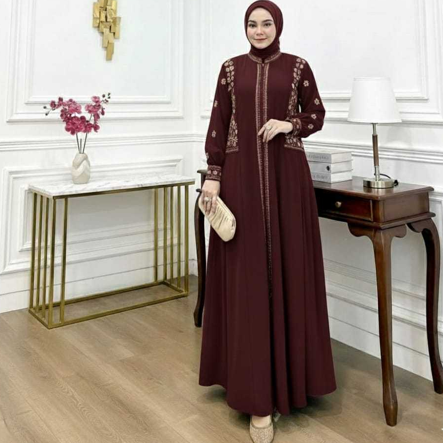 Faaz_Fashion.id Gamis latifa Motif Bordir Set Hijab Mewah Elegant Dress Pesta Muslimah Kekinian