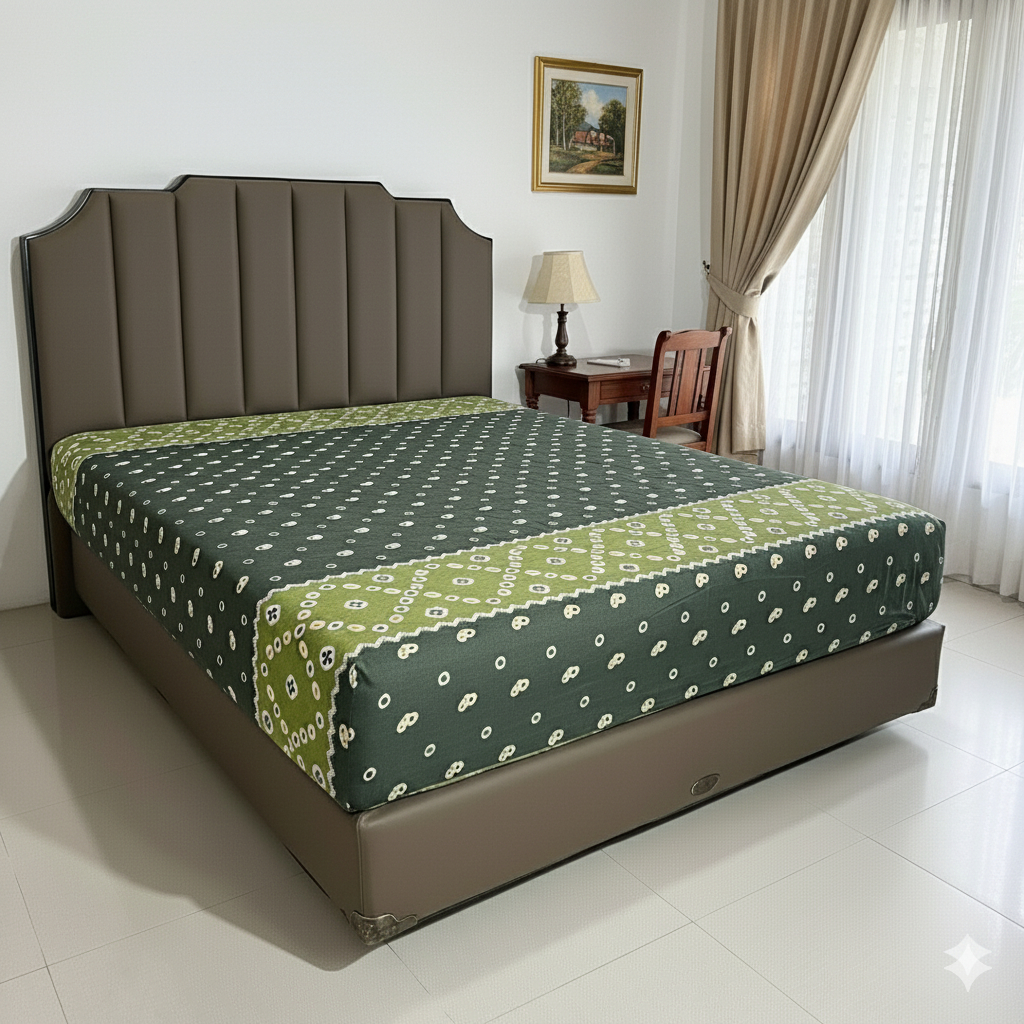 Sprei Tinggi 30 Cm Batik Jumputan Katun Halus Set Bantal Guling