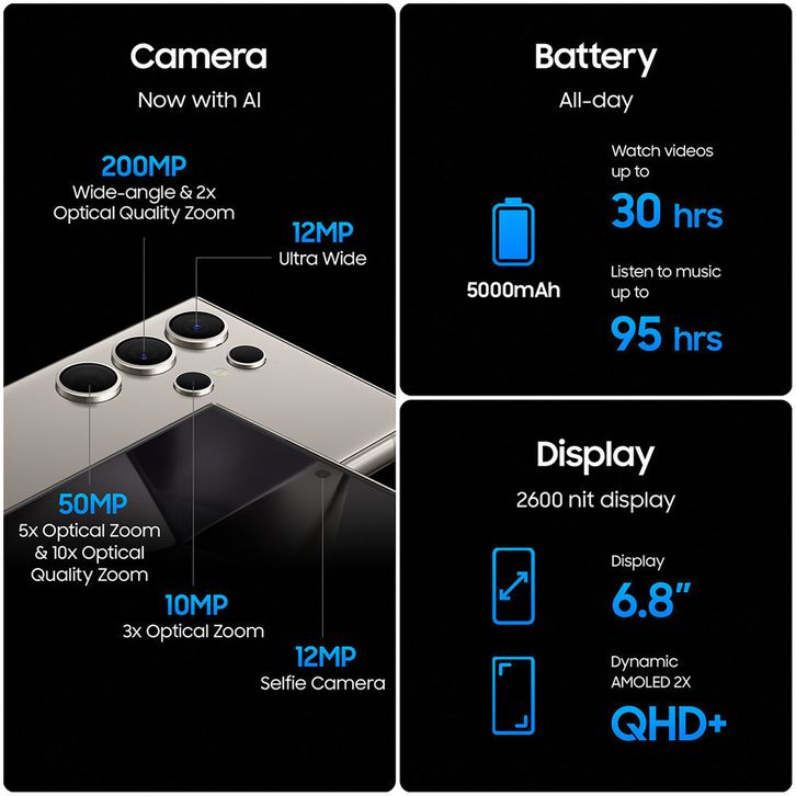 [Mall] SAMSUNG Galaxy S24 Ultra 5G 12GB 256GB Garansi Resmi SEIN 1 Tahun – Snapdragon 8 Gen 3, Kamera 200MP OIS,