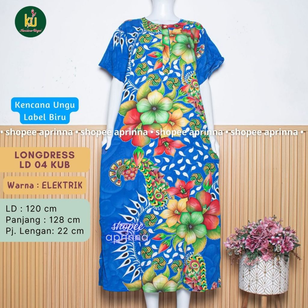 LD 04/08 Batik Kencana Ungu Daster Panjang Daster Lengan Pendek Batik Kencana Ungu Asli Original Label Biru Baju Santai