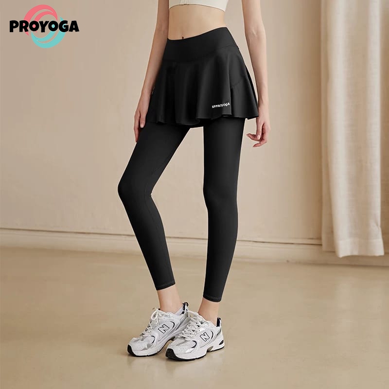 PROYOGA 2 dalam 1 Celana high waist Yoga collection Wanita Rok Pendek Panjang Tinggi Pinggang Polos Warna Tunggal Fitnes