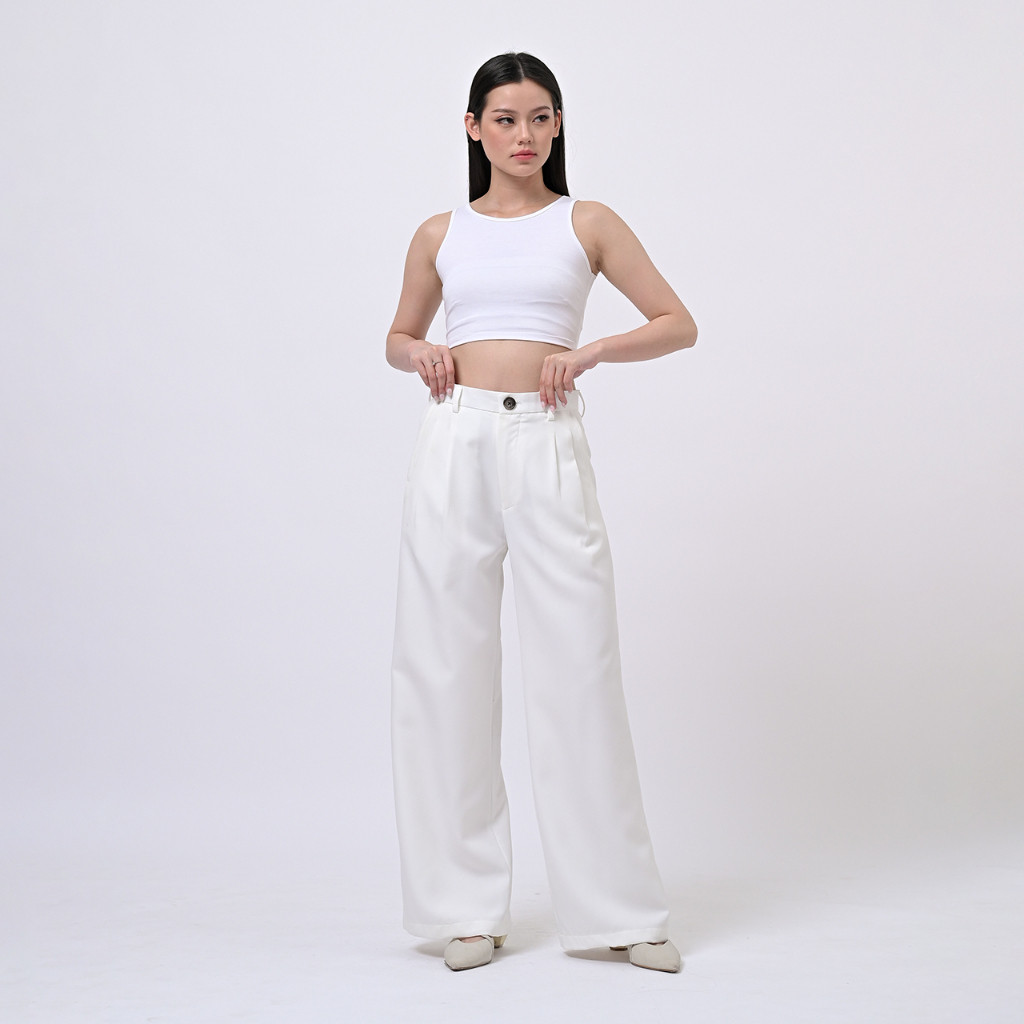 FEMMI Celana Panjang Wanita White Loose Highwaist City Pant