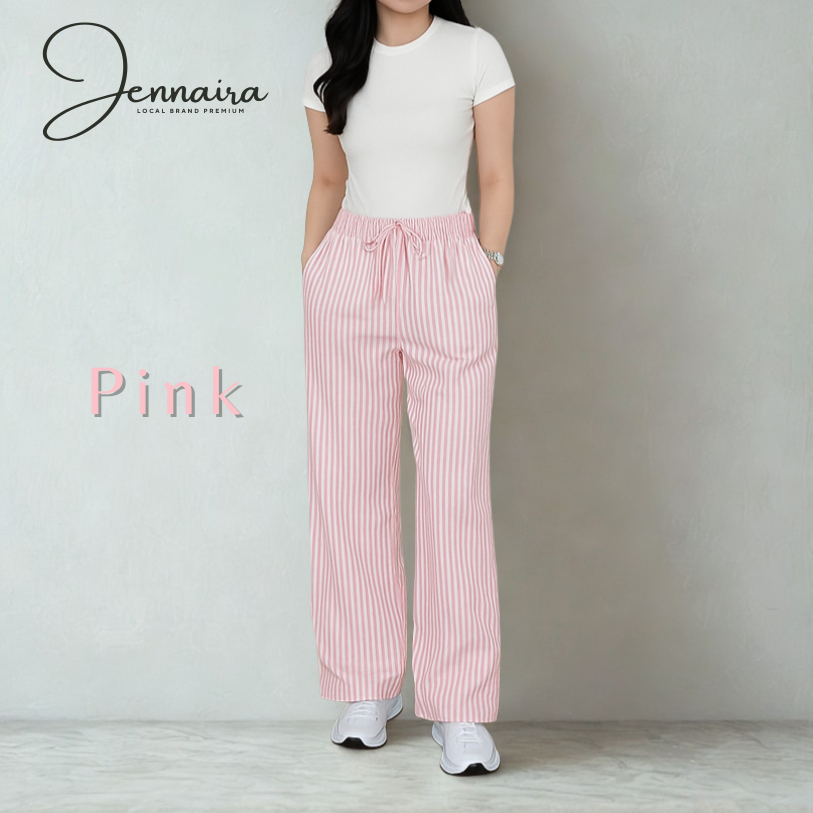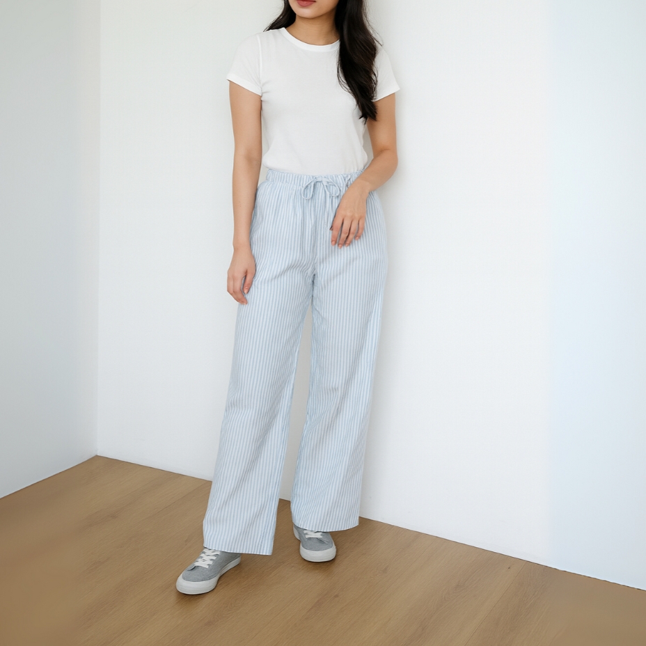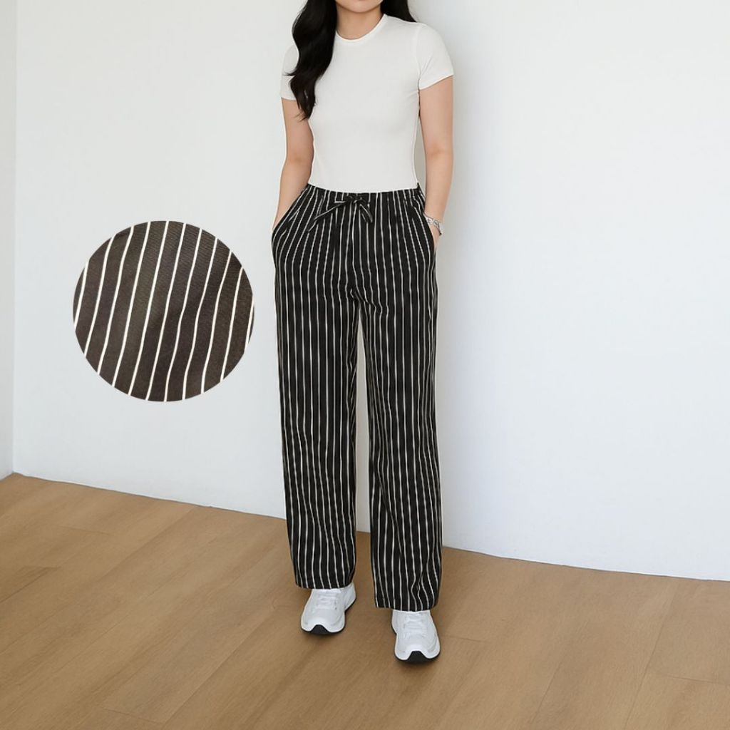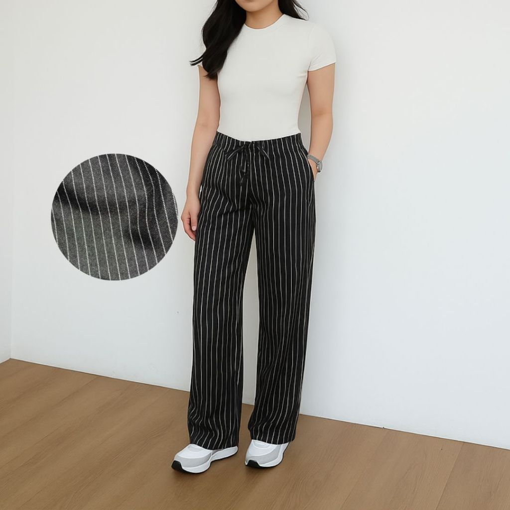 Stripe Pants Wanita - Celana Stripe Korea High Waist 100 PERSEN Katun
