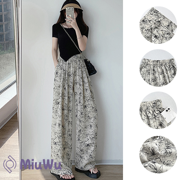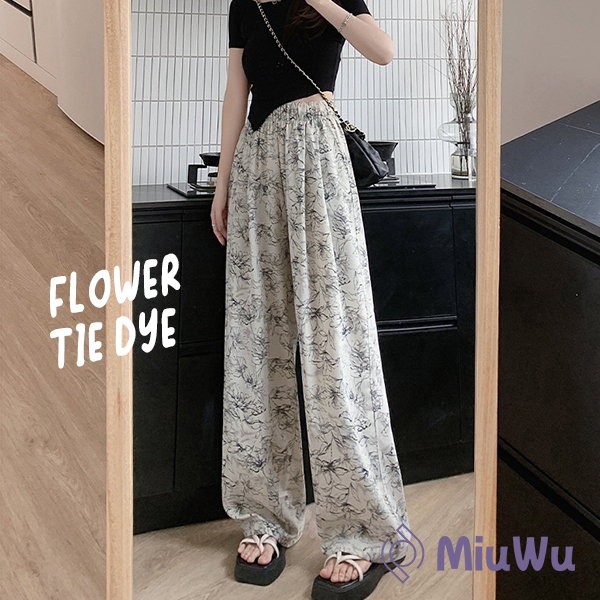Miuwu Celana Kulot Highwaist TieDye Flower Korean Look Loose Pants Highwaist H1151