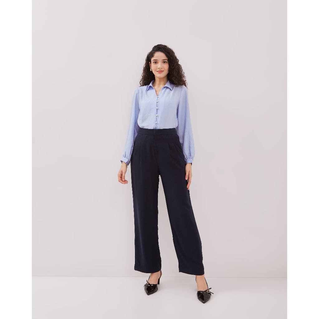 Urban Exchange Lilian Navy Wide-leg Pants - Bawahan Celana Panjang Formal Navy