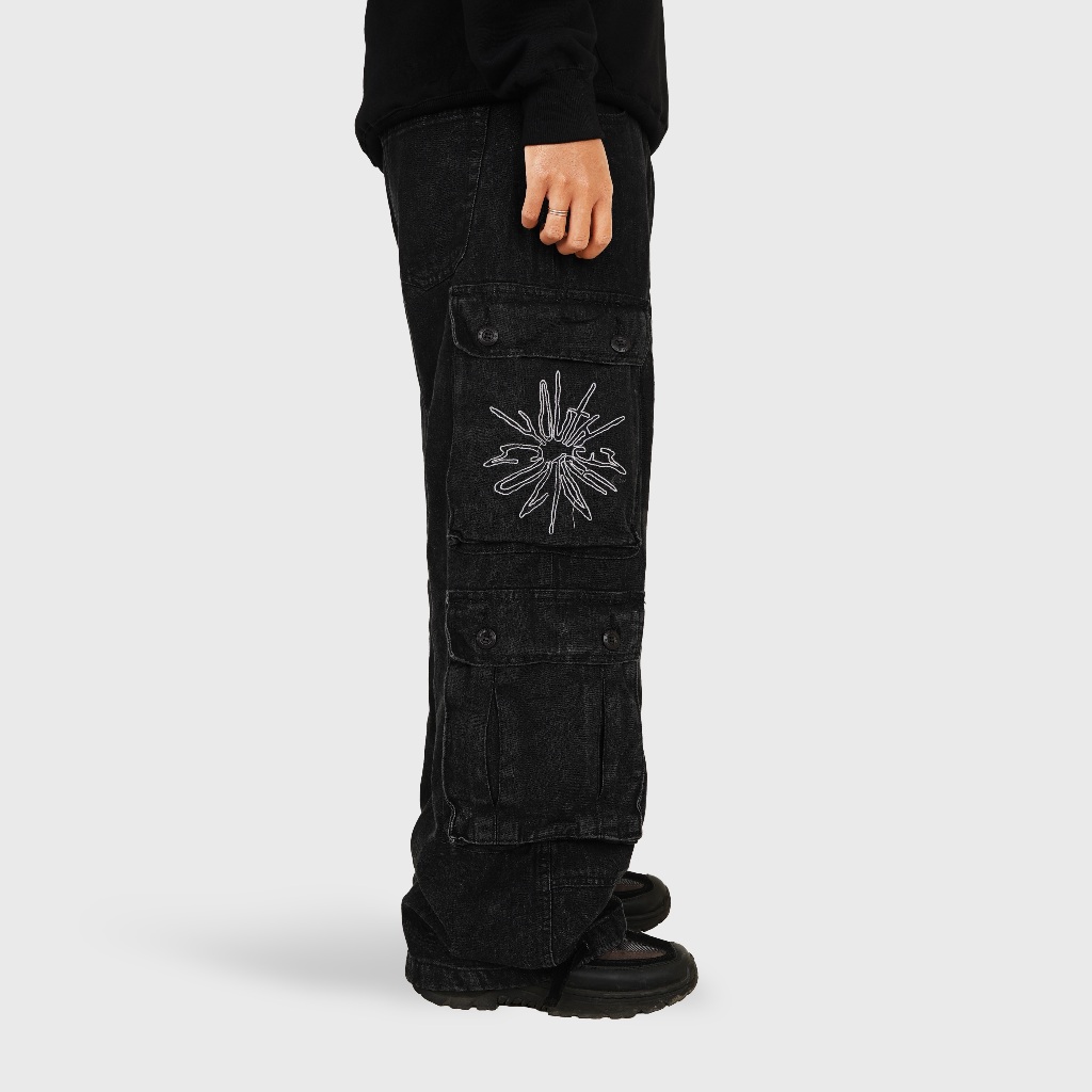 Epidemic Baggy Denim Cargo Pants Vortex Black Wash