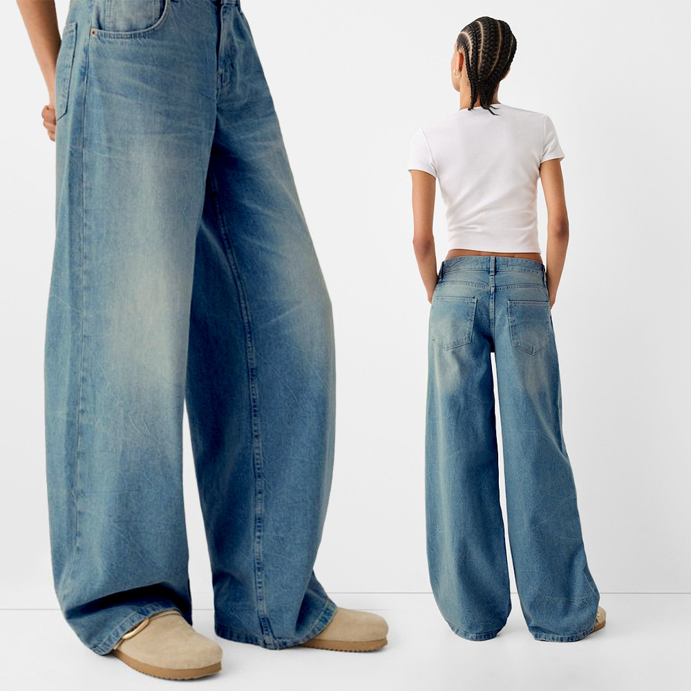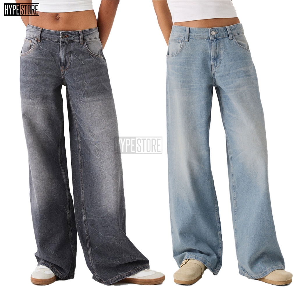 Hypestore Celana Jeans Wanita Bershkka Low Waist Baggy Jeans